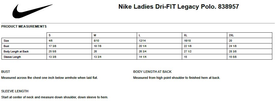 A modern tribute to the unparalleled Nike heritage, this sophisticated polo has a subtle, grid-like texture and is engineered with Dri-FIT moisture management technology. Tailored for a feminine fit. Design details include a self-fabric collar with an open Y-neck placket and open hem sleeves. The contrast heat transfer Swoosh design trademark is on the left sleeve. Made of 4.2-ounce, 100% polyester Dri-FIT fabric.