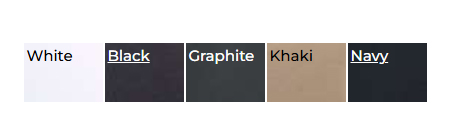 Available in: White, Black, Graphite, Khaki, and Navy