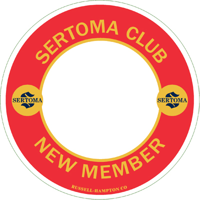 Traditional style New Member Club name badge. Personalized 3-1/2" diameter badge with clear vinyl cover.