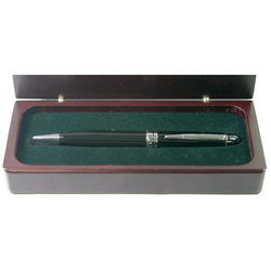 Beautiful Executive Black Laquer Finished Pen w/ Silver Trim paired with an Elegant Rosewood Display Box.